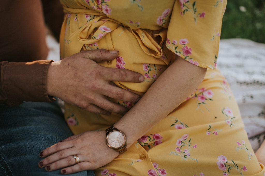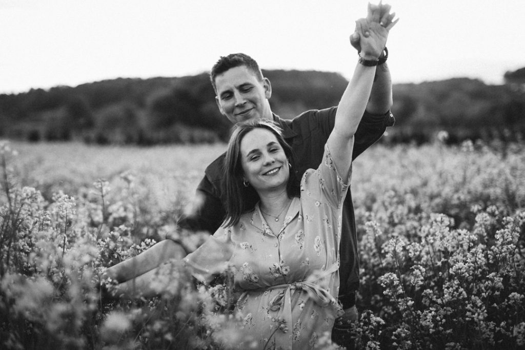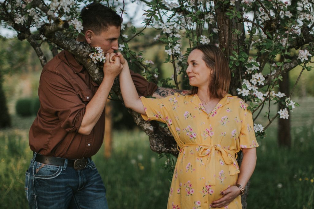 Schwangerschaftsshootings im Frühjahr; wenn noch kein Geschwisterkind dabei ist, empfehle ich immer, dass dieses am Abend stattfindet (außer ihr möchtet Fotos im Studio, dann wäre vormittags am besten!). Da ist das Licht einfach wunderschön und magisch und wir haben eine entspannte und lustige Zeit draußen in der Natur!